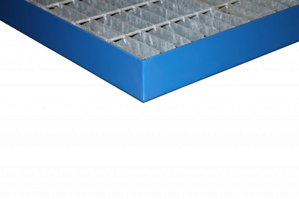 Il sistema è basato su vasche modulari con grigliato zincato ad alta portata. Il grigliato è elettrosaldato, con maglia da 25×76 mm e piatto da 50×3 mm. Resiste al calpestio intenso e al passaggio di carrelli elevatori. Può sostenere anche carichi pesanti, rendendolo ideale per magazzini, officine e aree industriali.
