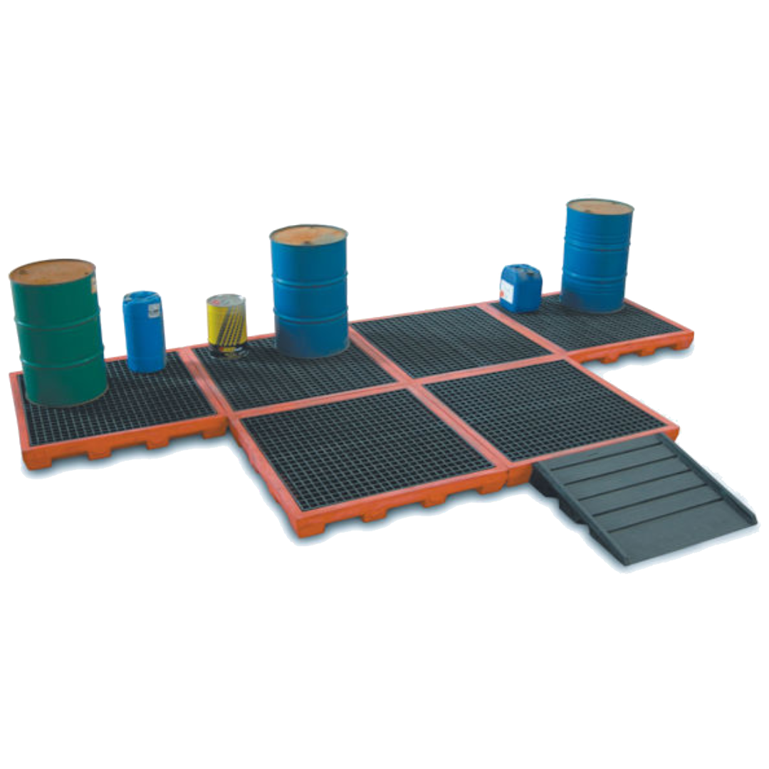 Ogni modulo ha una capacità di 160 litri e una portata di 600 kg, garantendo contenimento efficace. Realizzato in polietilene riciclato tramite stampaggio rotazionale, resiste a acidi, basi, oli e sostanze non infiammabili. Inoltre, non arrugginisce e non richiede manutenzione, anche in ambienti umidi o esterni.