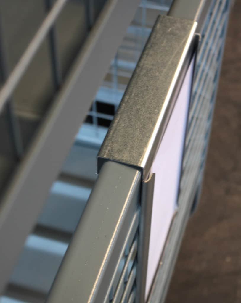 I Porta cartellini si montano facilmente su scaffalature, pedane, container o vasche di contenimento. Non richiedono attrezzi speciali e si adattano a qualsiasi superficie piana. La struttura è realizzata in lamiera zincata o verniciata, per resistere all’usura quotidiana anche in ambienti industriali gravosi.