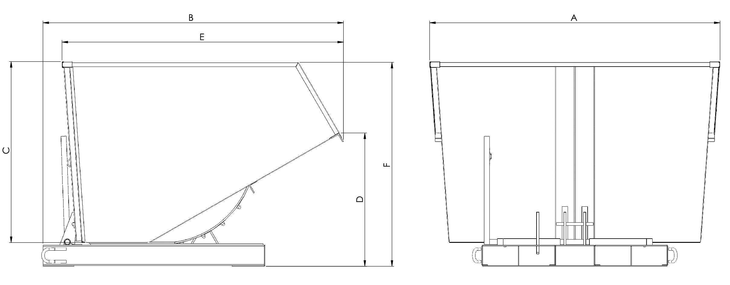 La benna ribaltabile Needcontainers dispongono di doppio inforcamento, permettendo di sollevarle sia con carrello elevatore sia con transpallet. Inoltre, l’operatore può effettuare lo scarico della benna rimanendo comodamente seduto al posto di guida del carrello, azionando la leva di sgancio tramite apposito cavo, così da rispettare gli standard di sicurezza e ridurre il rischio di incidenti.