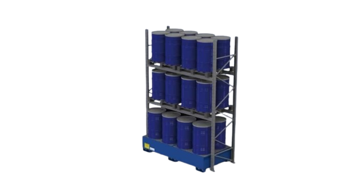 La Scaffalatura porta Fusti verticali di Needcontainers è la soluzione ottimale per aziende che devono stoccare in sicurezza un elevato numero di contenitori pericolosi senza rinunciare a conformità, stabilità o efficienza. Progettata per rispettare tutte le normative europee sulla sicurezza sul lavoro e la tutela ambientale, questa struttura permette di posizionare fino a 24 fusti da 200 litri in posizione verticale su un’unica unità — massimizzando lo spazio utile e semplificando la gestione del magazzino.