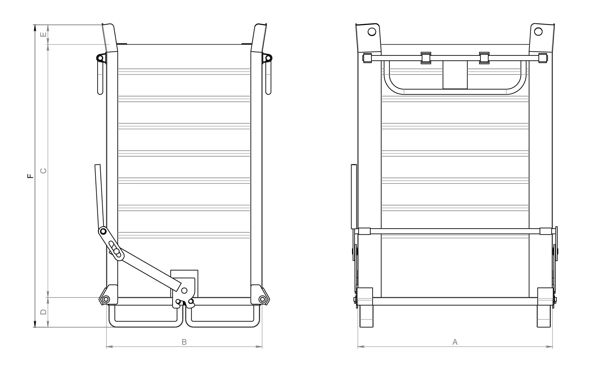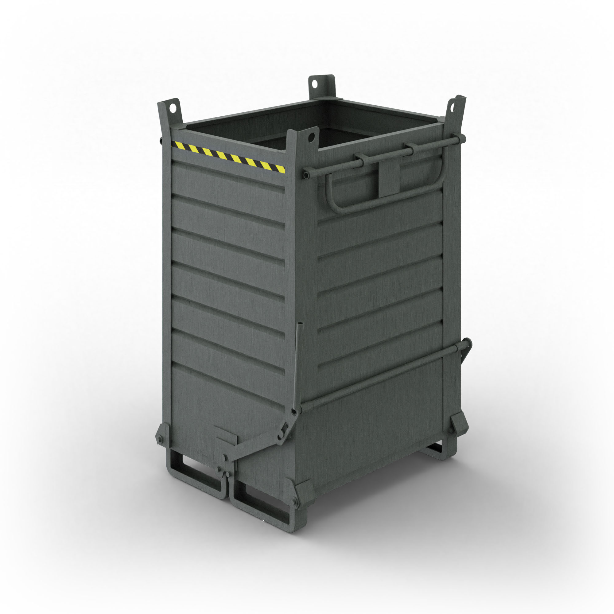 Grazie alla lamiera maggiorata rispetto ai contenitori standard, il contenitore raggiunge una portata di 2000 kg. Puoi movimentarlo facilmente tramite carrello elevatore o gru, mentre il blocco di sicurezza impedisce l’azionamento accidentale della leva di scarico, proteggendo operatori e materiali durante l’utilizzo.