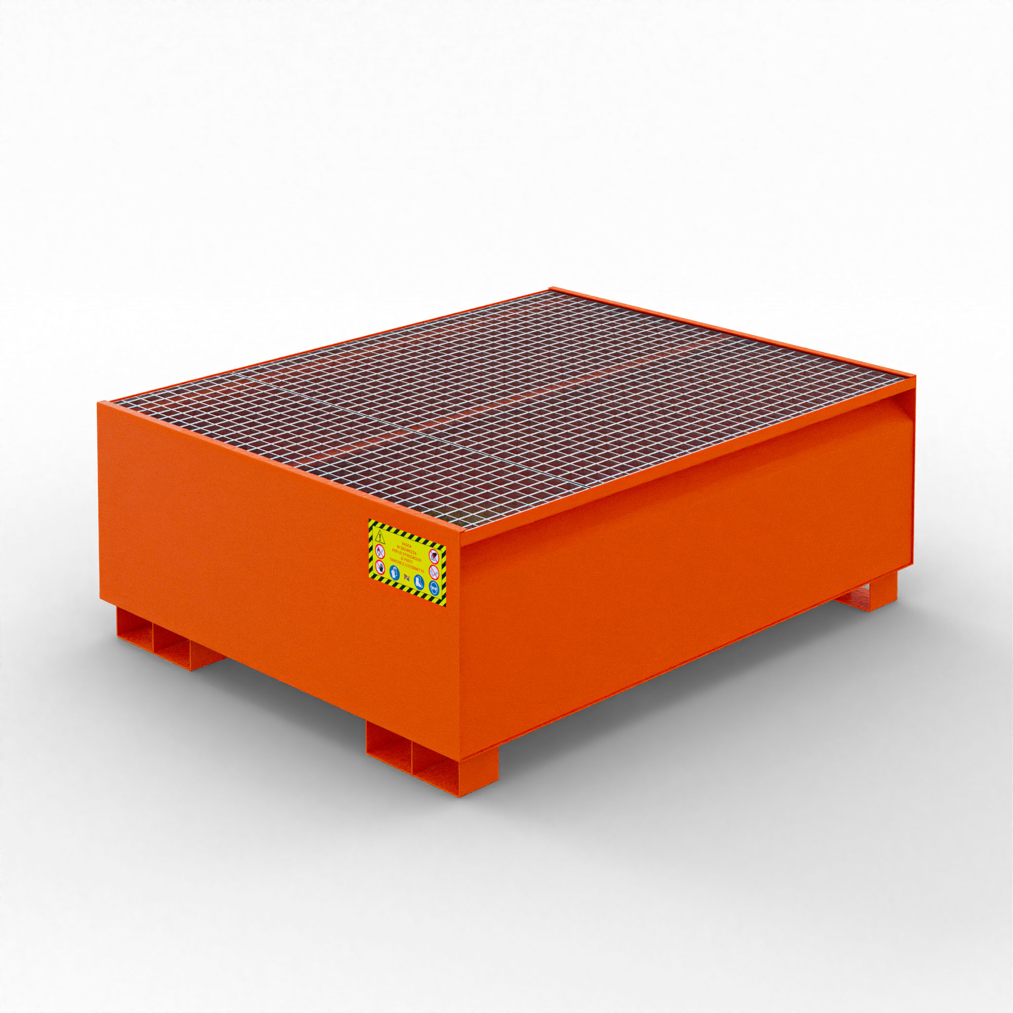 Realizzate in acciaio al carbonio S235JR o superiore, le Vasche di raccolta in metallo per cisternette hanno uno spessore di 3 mm (30/10). Le saldature sono controllate elettronicamente per garantire tenuta stagna assoluta, senza microfessure o punti deboli. Inoltre, tutte le dimensioni rispettano gli standard UNI, assicurando perfetta compatibilità con le IBC standard. Per questo motivo, sono dotate di entrate per forche, per un sollevamento rapido e sicuro con carrelli elevatori.