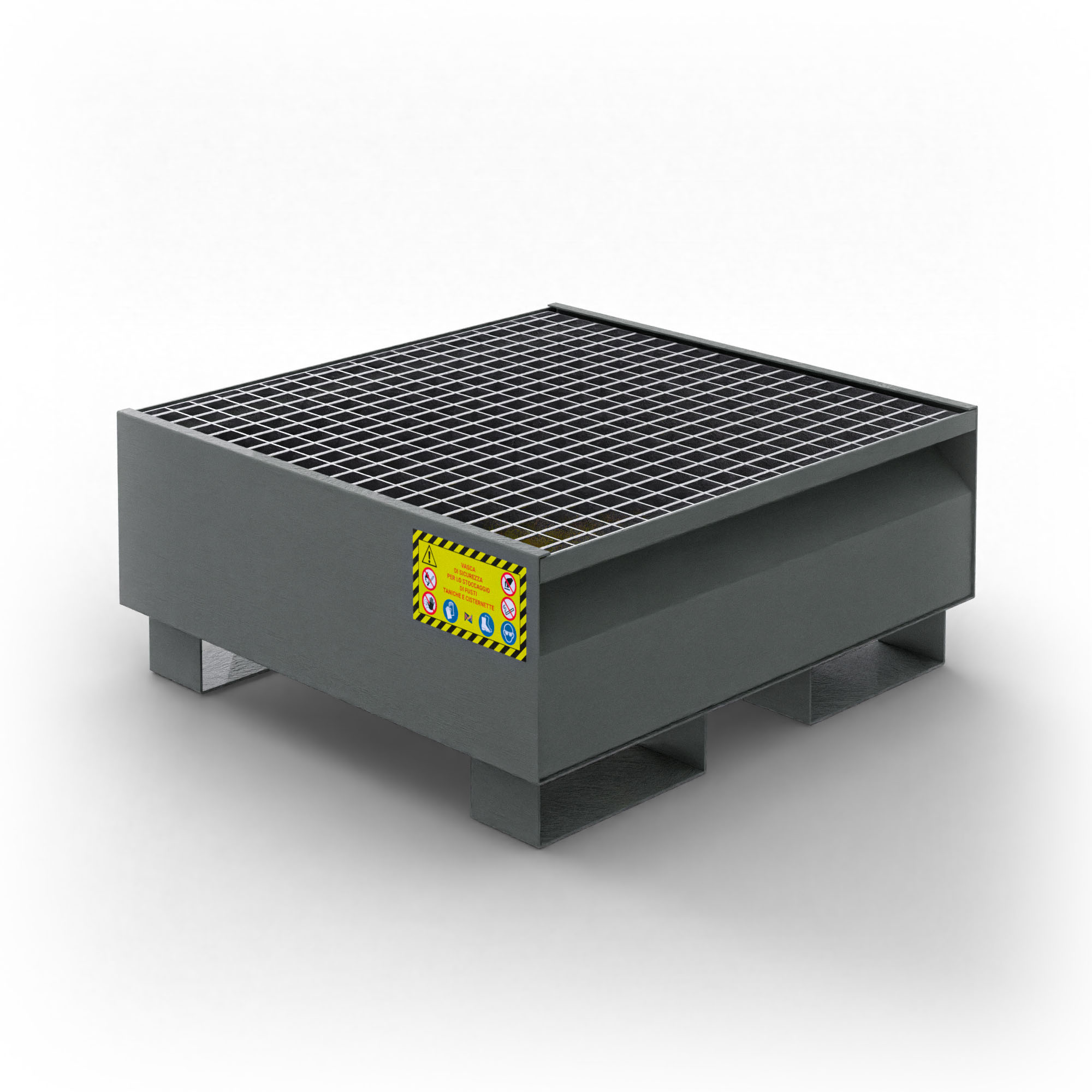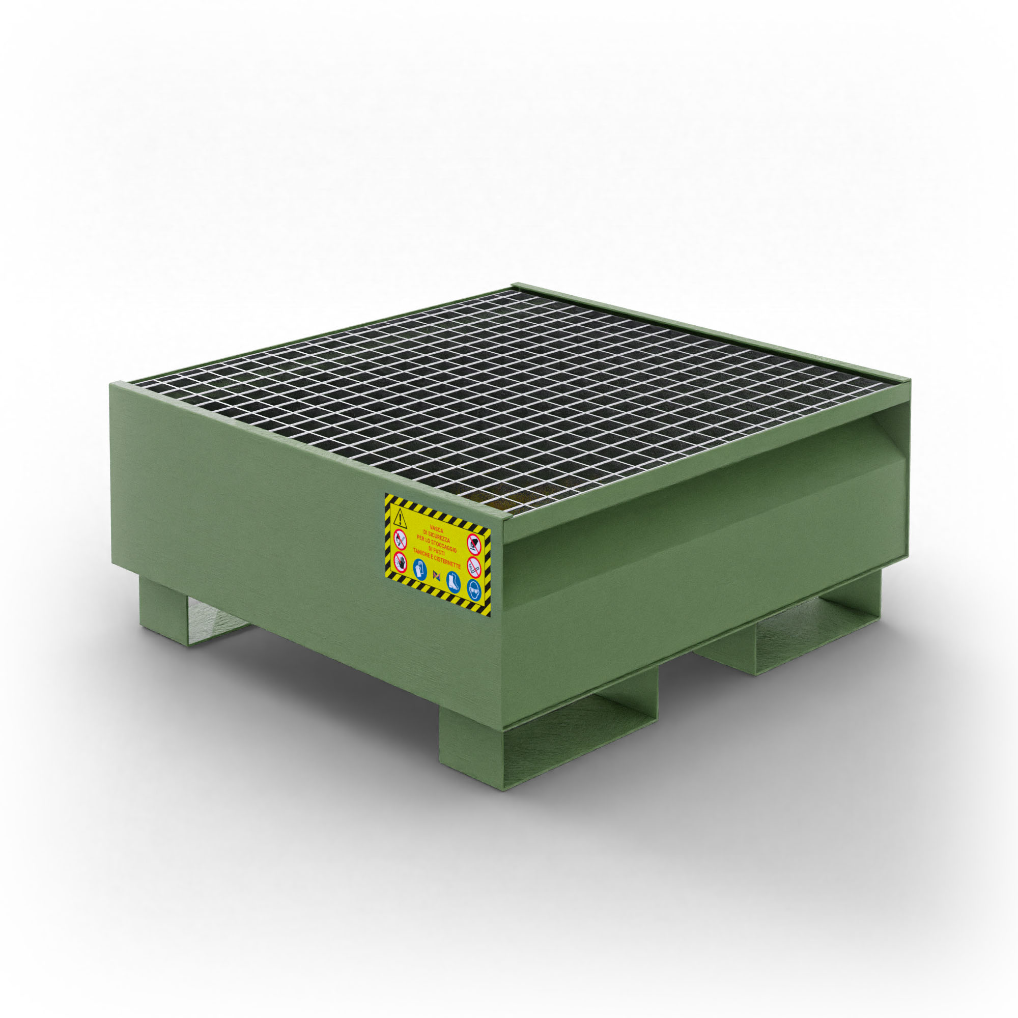 La Vasca di raccolta in metallo per fusti Needcontainers è progettata per trattenere liquidi pericolosi in caso di sversamenti. In questo modo, protegge il suolo e le falde acquifere. Grazie a questa soluzione, le aziende rispettano il Decreto Ministeriale 18.05.1995 e le normative europee. Inoltre, ogni unità supera severi test di tenuta prima della consegna.