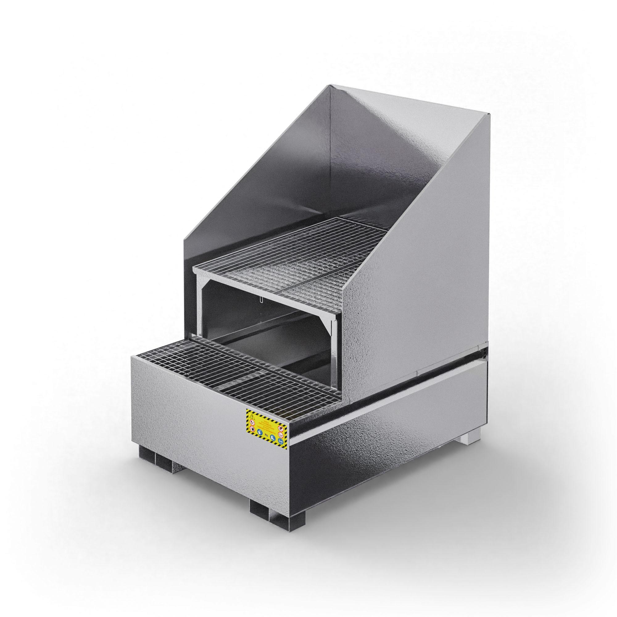 Vasca inclinata di raccolta in metallo per cisternette da 1000 LT IBC con para spruzzi |